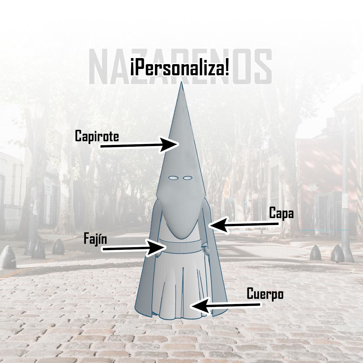 Estos mini nazarenos cofrades son un artículo original y lleno de simbolismo, diseñados para representar a las distintas hermandades de Semana Santa de una forma cuidada y actual. Están fabricados mediante impresión 3D, lo que permite un acabado preciso y una gran variedad de opciones de personalización.