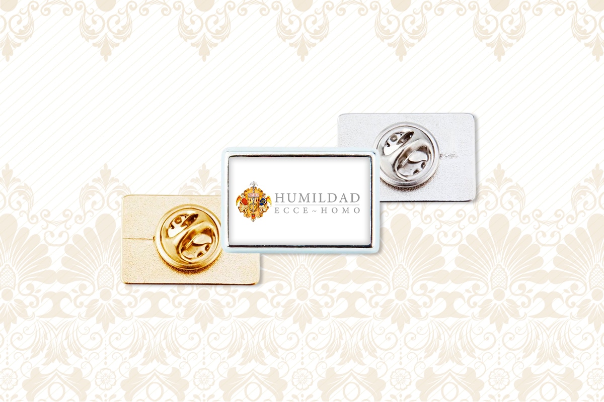 El pin rectangular personalizado es una opción distinta y con personalidad propia dentro de los recuerdos cofrades. Su forma alargada permite incluir detalles como el escudo completo de la Hermandad, una imagen significativa o incluso una pequeña leyenda o inscripción.